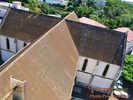 Les fermes principales de la charpente ont été recelées, les poutres en hêtre termitées ont été changées et une nouvelle couverture de 1.700 m² posée.