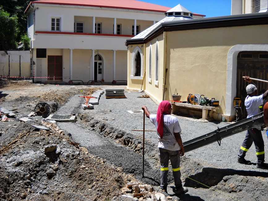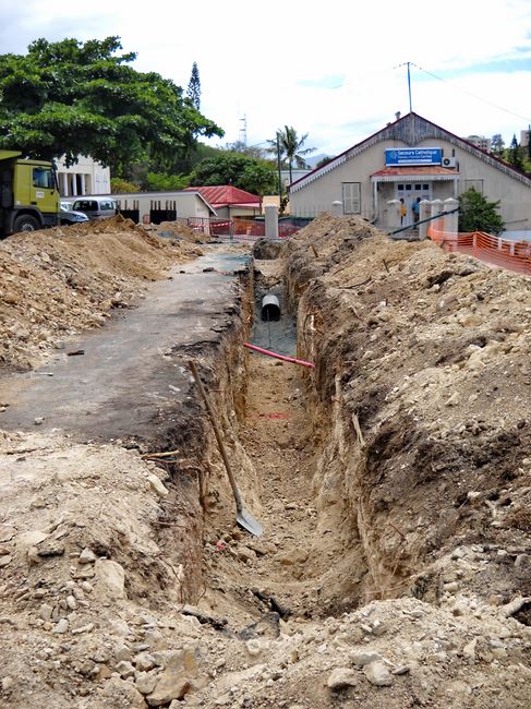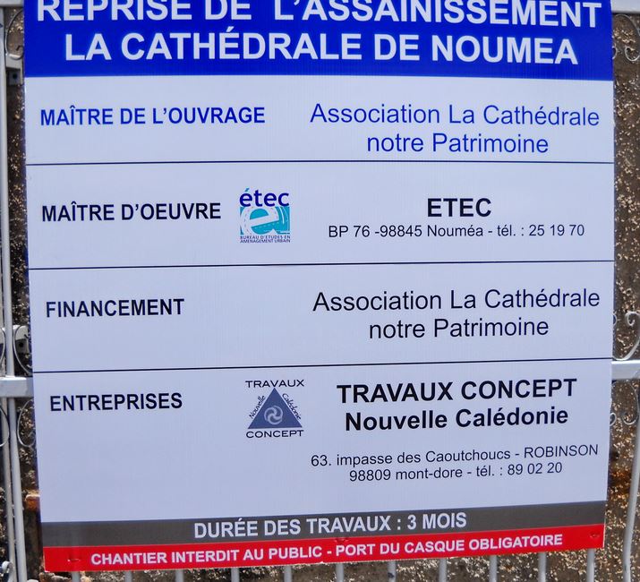 Les réseaux d’évacuations ont été évalués à 23 M (193.000 €), la Province Sud, la Mairie de Nouméa, l’État, sans oublier l’association « La Cathédrale, notre patrimoine » les ont financés.