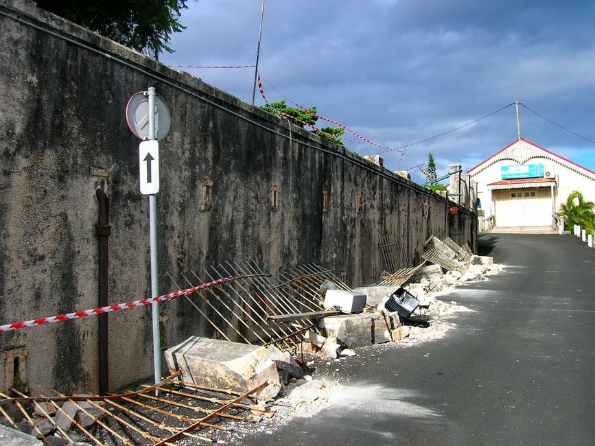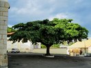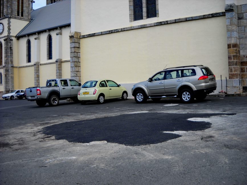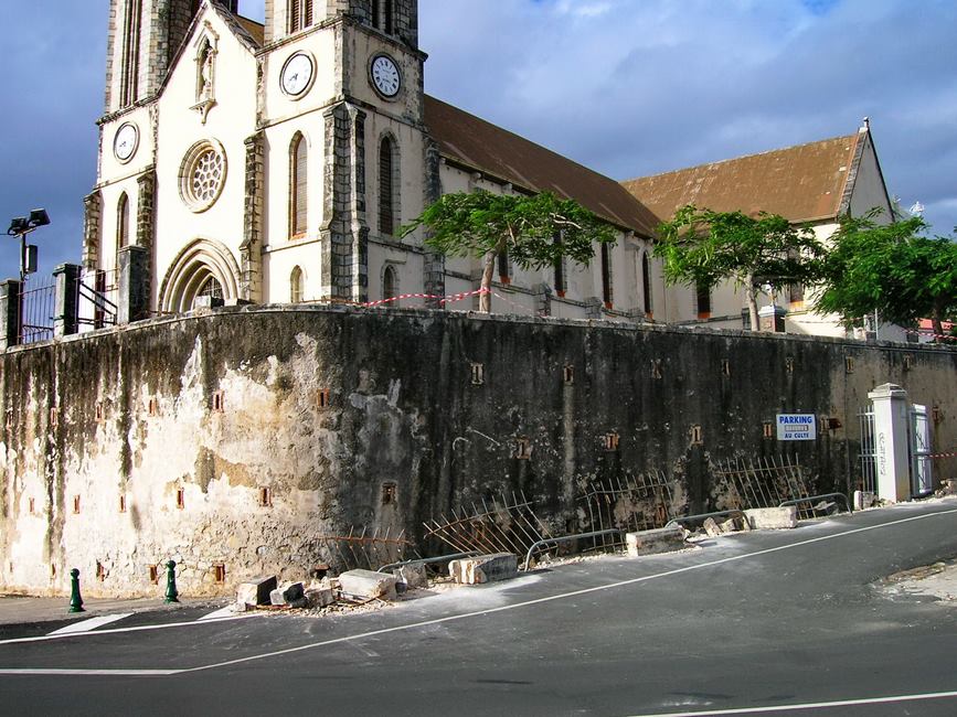 Le badamier situé à côté de la sacristie, diffusait une ombre généreuse aux paroissiens. Seulement ses racines grandissaient, dégradant le parking et menaçant également les murs de la cathédrale. Pour préserver notre patrimoine, l’option retenue est la suppression du coupable. Il fut coupé, débité, ses racines retirées, et enfin une rustine posée sur le bitume. Le tout pour un montant de 144.000 F (1.200 €).